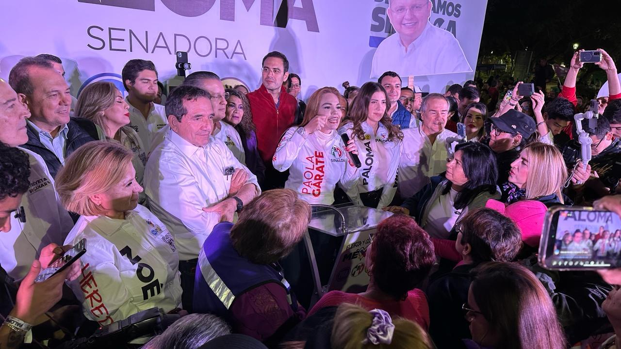 “Me comprometo a dejar mi corazón y mi alma entera en esta campaña porque escúchenlo bien, aunque amenacen, presionen y nos acosen para tratar de meternos miedo, yo no me voy a bajar de esta contienda; porque yo no voy a renunciar a defender a Sinaloa”, subrayó Paloma Sánchez.