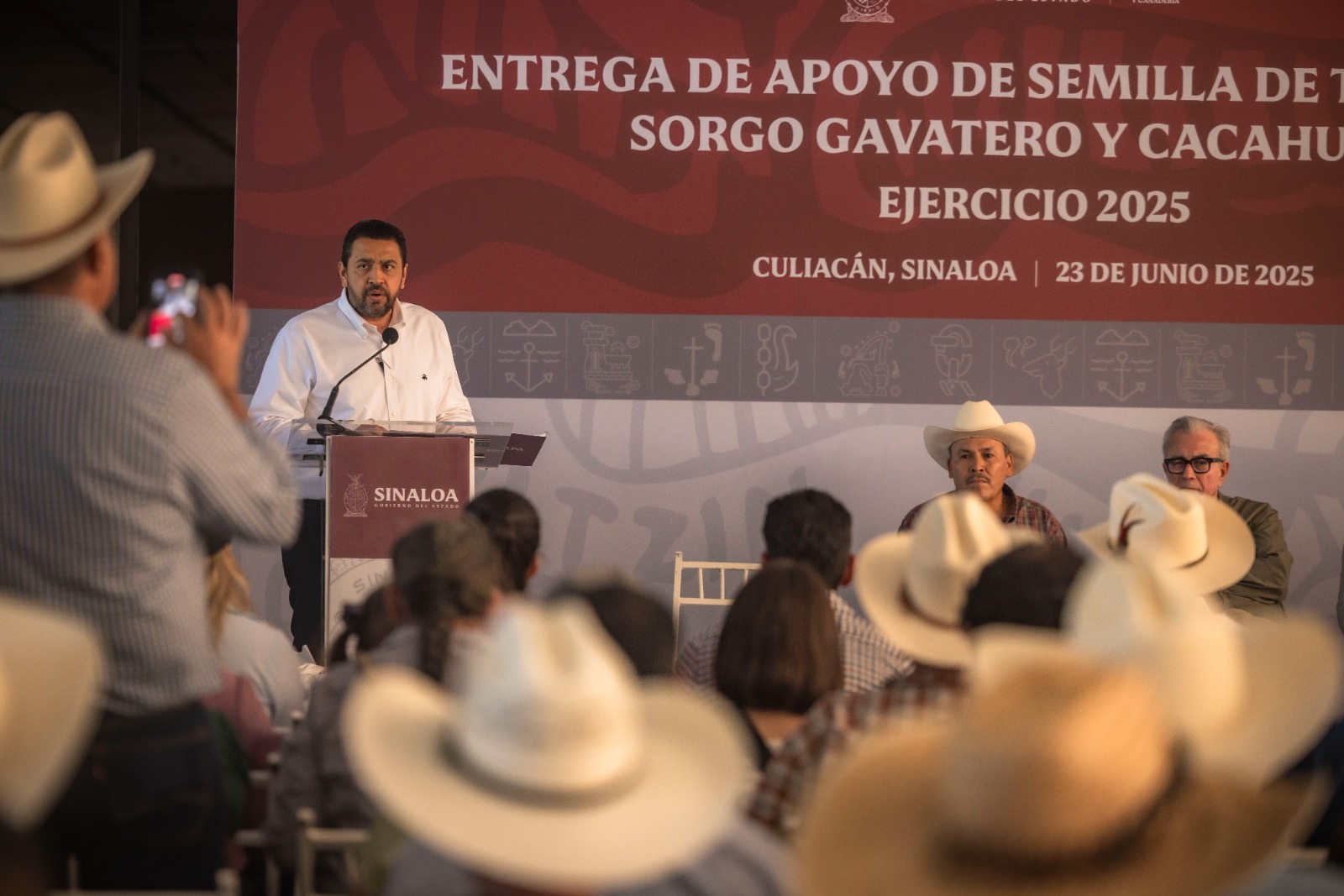 Culiacán, Sinaloa 23 de junio de 2025.- Impulsando el desarrollo del sector agrícola y ganadero de Sinaloa, así como el bienestar de miles de familias que dependen de estas actividades productivas, el gobernador Rubén Rocha Moya, arrancó la entrega de apoyos en semilla a 7 mil 169 productores temporaleros y pequeños ganaderos.
