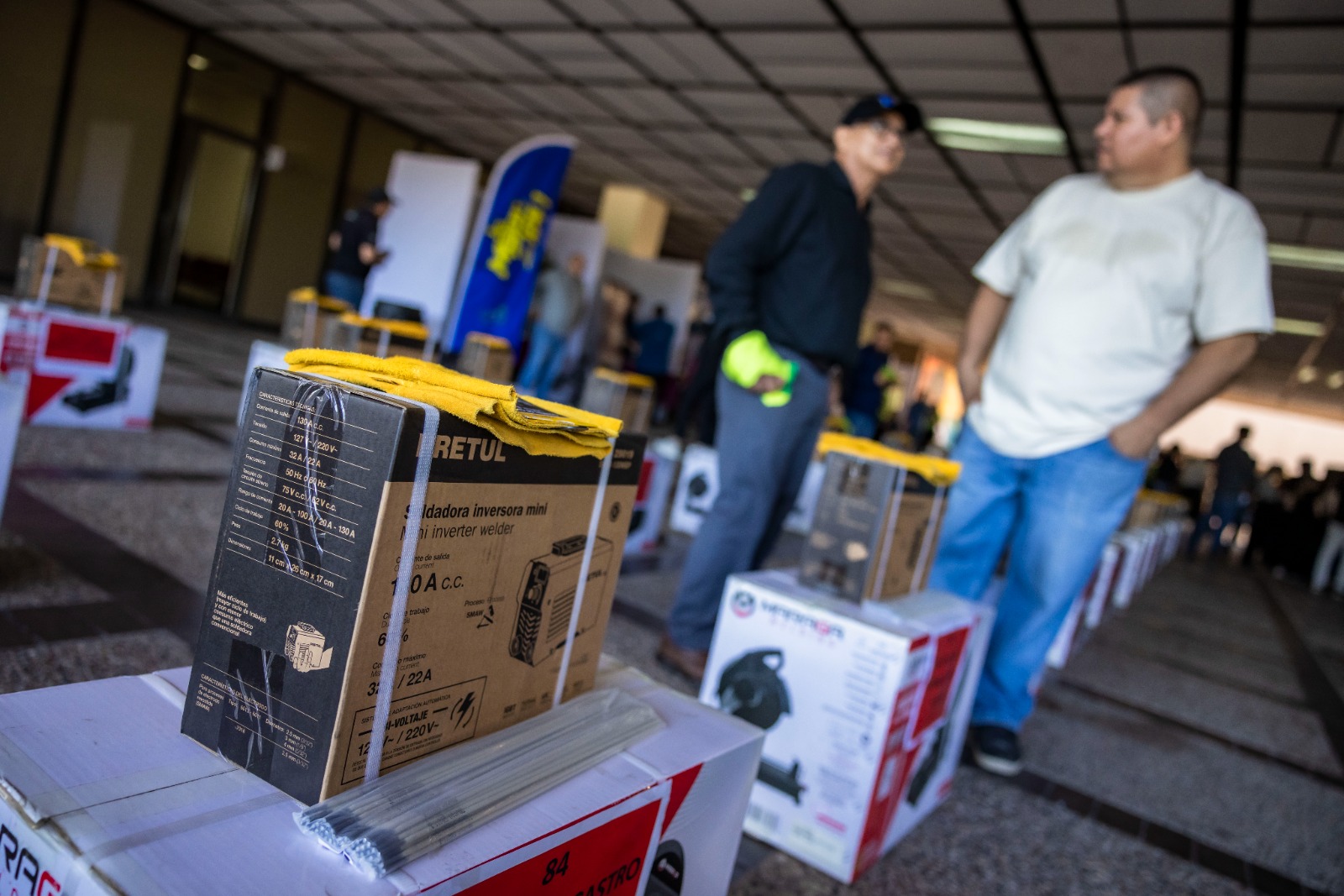 *En total se beneficiaron a 150 mujeres y hombres a quienes se les hizo entrega de 740 equipos valuados en 1.2 millones de pesos para diversos oficios, como carpintería, herrería, plomería y electricidad